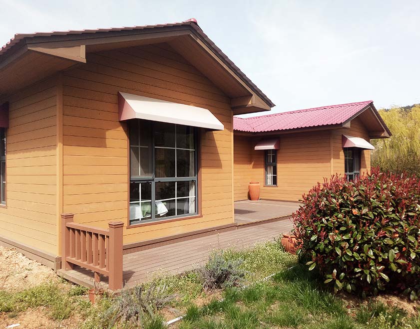 此項目位于青島市嶗山區哥莊主要用于旅游度假。根據整體布局進行合理設計,包括3個臥室、3個衛生間、1個儲藏間、1個廚房、1個客廳。在外觀造型上利達輕鋼別墅色彩造型多變,造型更加富于輕盈動感,具有更佳的保濕性能,不同質感的墻面材料,可創造出各種建筑風格,該建筑是典型的田園風格,與周圍青山綠水的環境的融為一體。別墅材料大部分為環保型產品,屬綠色建筑產品。加之冷彎型鋼龍骨較小的尺寸和自重,比傳統結構提高了建筑面積利用率,降低了基礎費用。更值得一提的是輕鋼別墅體系施工工藝簡單,工期短;現場干作業,在施工過程中對環境的污染小。