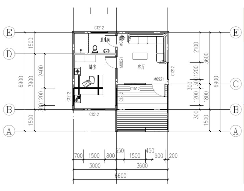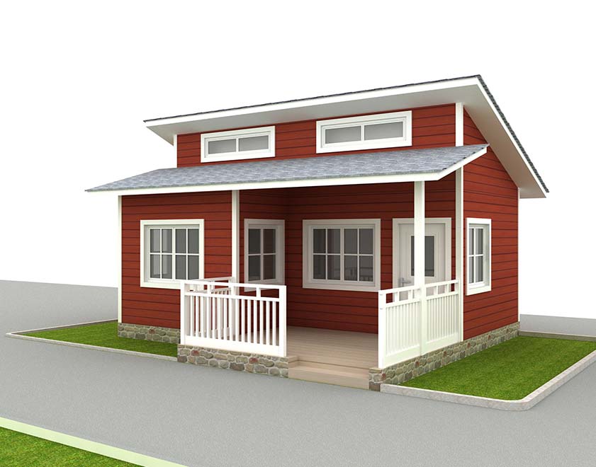 外墻用木塑掛板(材料可選),石膏板內墻(材料可選),鋁合金門窗(材料可選)。