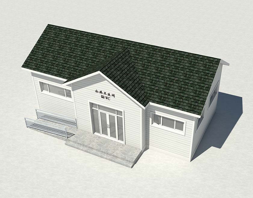 配套建筑部品:整體為輕鋼結構,屋面多彩瀝青瓦+卷材防水(材料可選),外墻用水泥纖維掛板再刷涂料(材料可選),石膏板內墻(材料可選),鋁合金門窗(材料可選)。